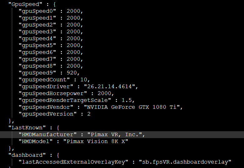 This would be great if your Pimax experience can do this, I get really annoyed with this every time i start steamVR and find my settings are changed. I use to make the settings read only must try that again and some of your suggestions again i had forgotten about after reinstalling SteamVR for the new Pimax Vision 8kX trying to get the most out it and SkyrimVR. Thanks again as always Sweviver for you help with settings and such very important.