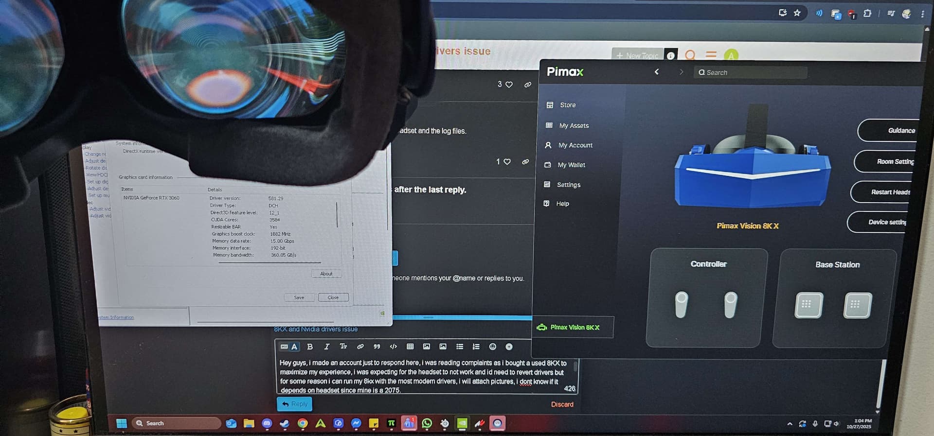 Just to share a new “issue”, since the new Battlefield 6 needs at least the 576 drivers, we can’t use Pimax 8KX anymore if you play both Battlefield and VR, unless swap drivers everytime, which is crazy. Any news or temporary fix available? Please Pimax guys talk again with Nvidia crew. Thanks.