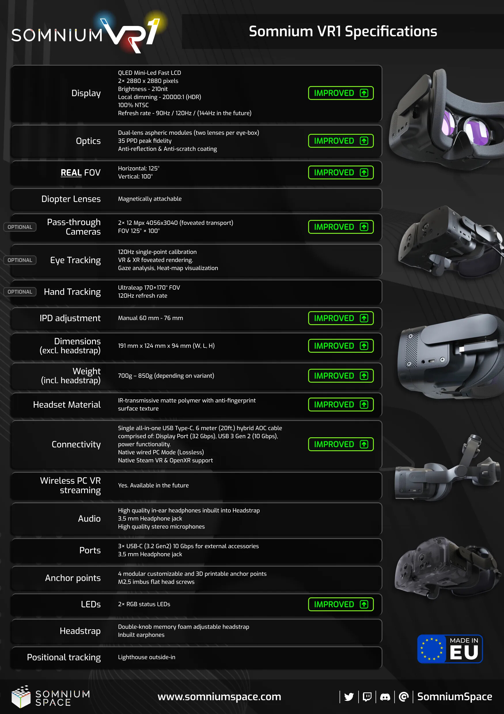 Somnium specs are just paper specs right now, they have yet to show anything substantial or working. I really hope they deliver on what they are promising but for now itās literally just a list of specs on paper, they have no track record of producing hardware whatsoever and come from a pretty sketchy crypto virtual real estate background so I think believe it when you see it (that goes for all headsets tbf though ha).