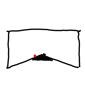 I made a picture to illustrate what I see in the StarVR One. I don’t see any borders at the top of my view. I see a little bit of border on the sides and some black where the bridge of my nose is. Farther out from my nose the vertical FOV gets much wider. The red dot is where I was looking at when I measured vertical FOV…