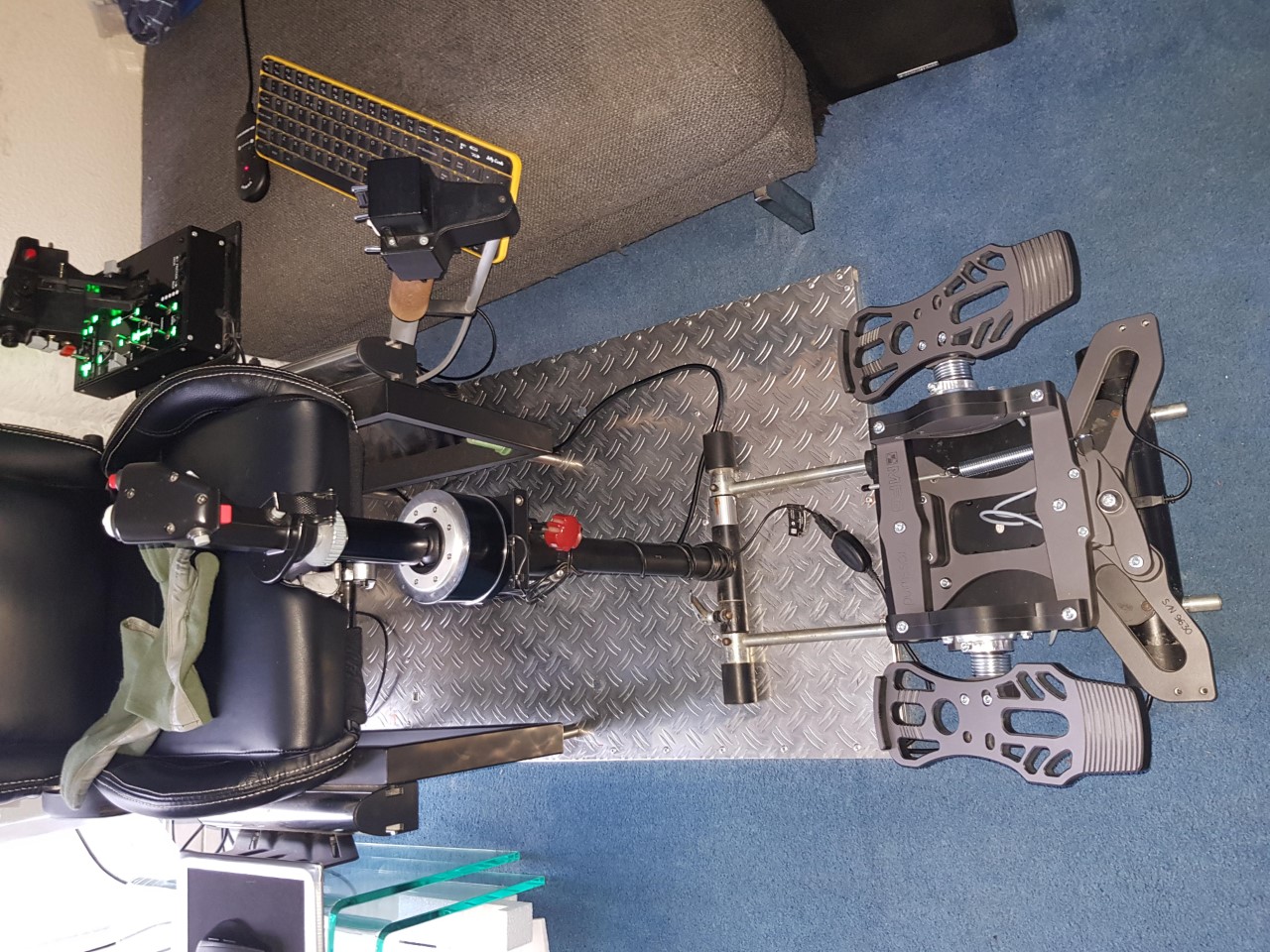 The problem with this approach is that U-joints have a small amount of play or slack or whatever you want to call it. While this isn’t a problem for most uses, when you place one at the bottom pivot point of your chair, that small amount of slack amounts to a good 6 inches (about 9.5cm) of play at your head. That is actually a significant amount of movement that is not matched by your visual input.