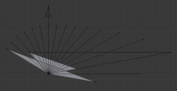 As you will no doubt have spotted by now, the distance along each of those far edges, between two points where it is intersected by two neigbouring radial lines (ten degrees, remember?), is significantly shorter at its middle point, than at either of its ends; The distances starts growing right away, more and more the farther away you get from the middle, and as it turns out, the last ten degrees of the p12k one crops off a longer stretch of the line, than all of the first 100 degrees together.
