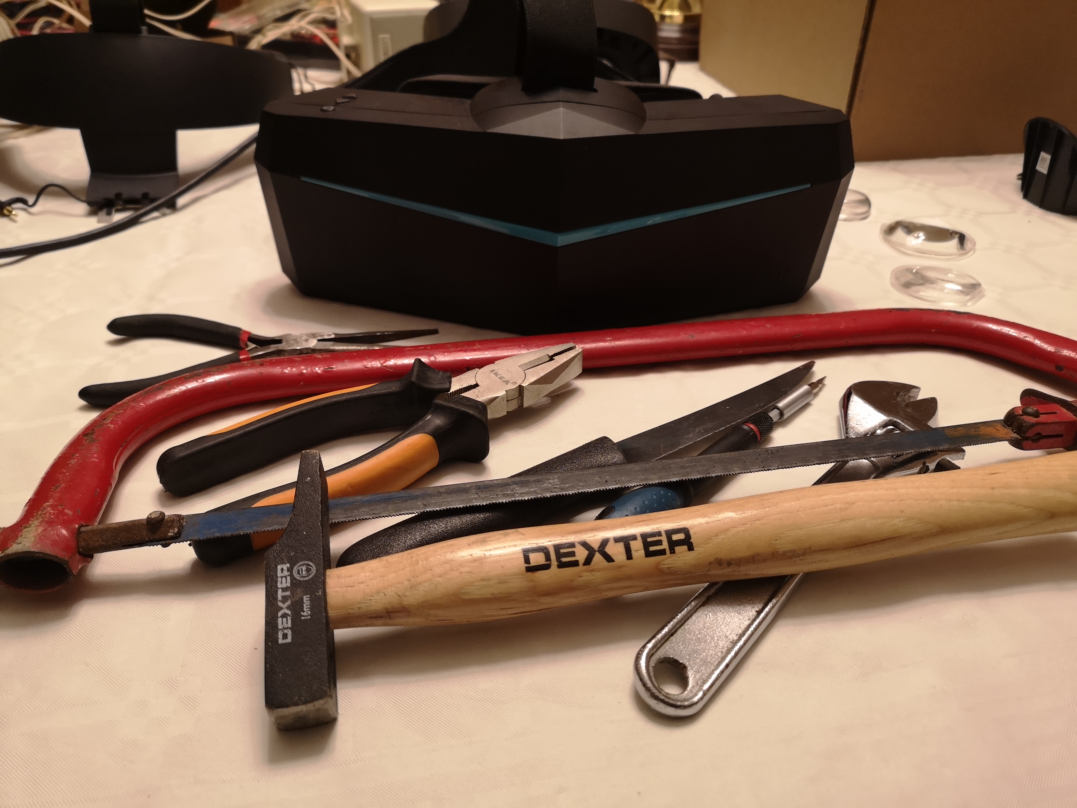 Left image/eye from Pimax 4K lens (installed on Reberb). Pictures through lenses are unreliable.