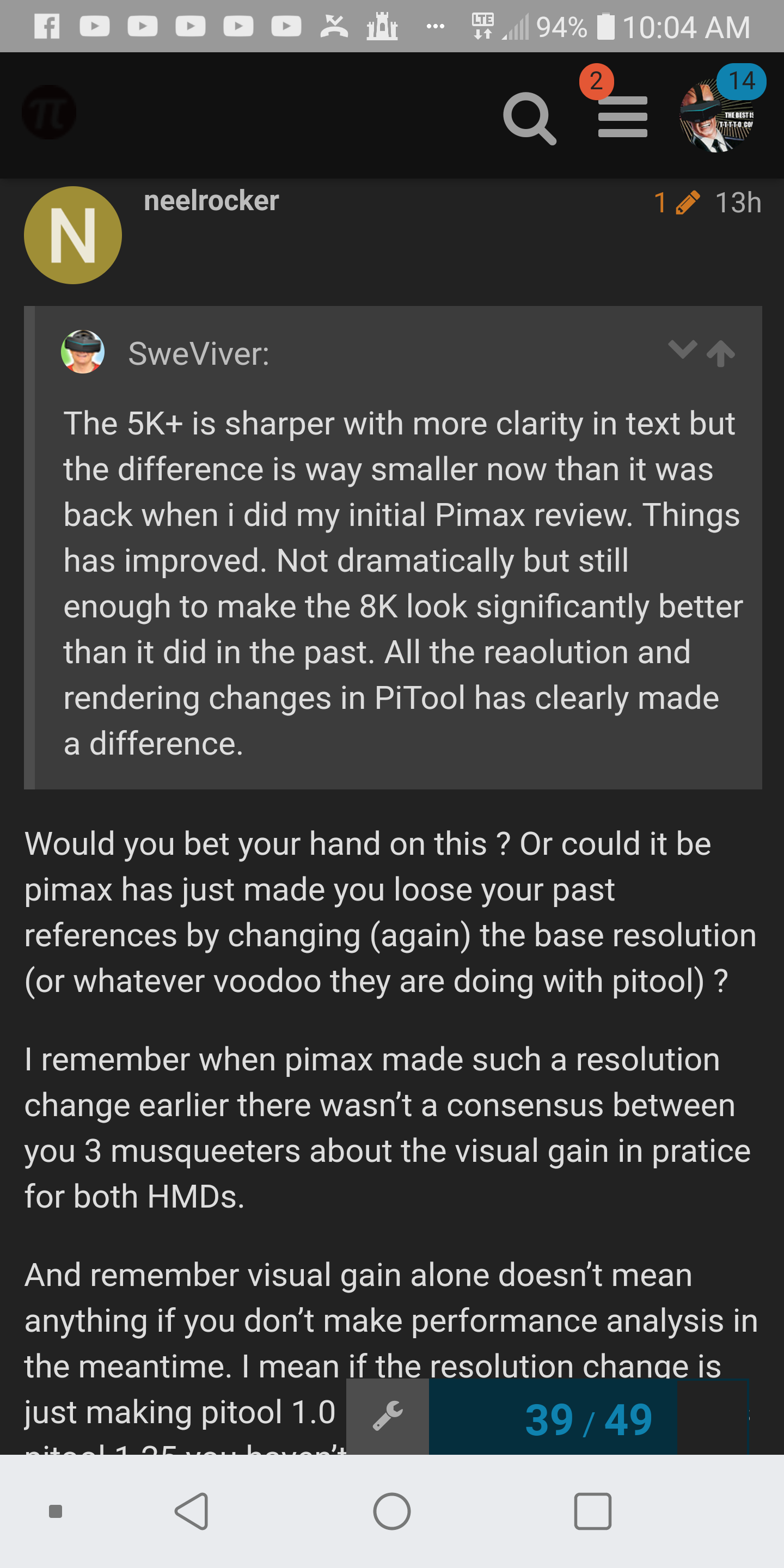I can agree with @SweViver. Base resolution (Target Res base) is the same on both headsets. Remember Marcin does gravitate toward the 5k+ but is seeing improvements in things like Render quality. @voodoodx on the other hand favors the 8k like myself.