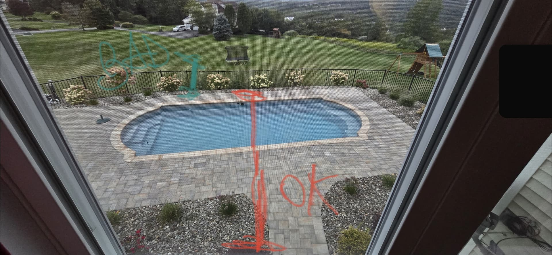 When i step on the land though the quality of the video degrades. I have to change my wireless router and get something with longer distance capabilities. My internet signal degdades when going farther than the pool, even for just phone use via internet. Between the pool femce and the trampoline area, the signal is degraded.