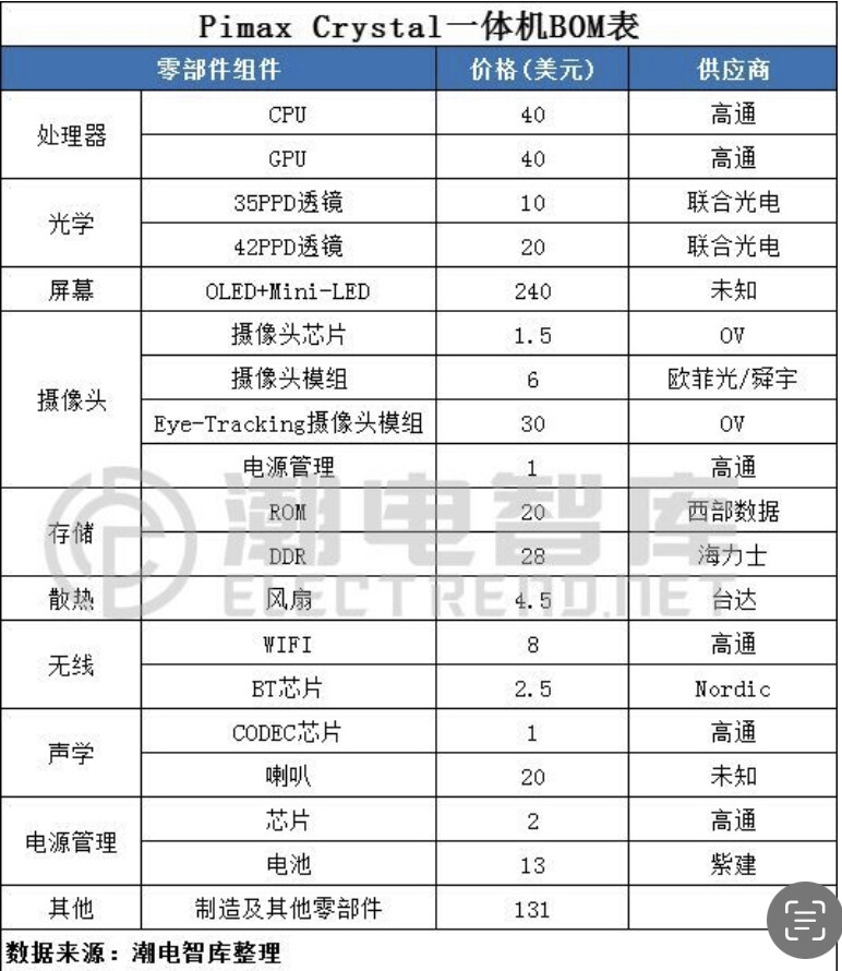 Ones is the cost of manufacture for Crystal controllers the other is wishful thinking on Pimaxes side.