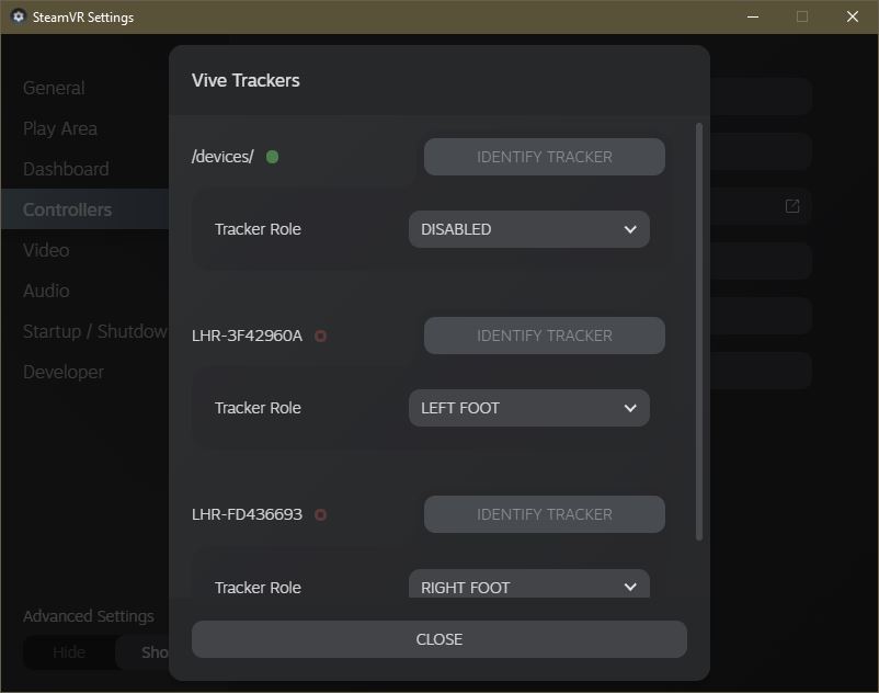 The entries below the single entry at the top there pertain to inactive HTC Vive Trackers.