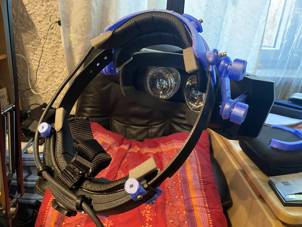 I took a headstrap from a broken psvr & created a headstrap adapter which has at least some adjustment on all axis.