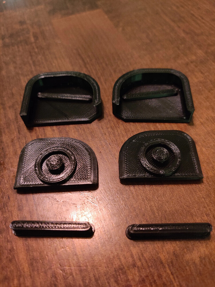 I moved the attachment point on the hinges higher to shift the pressure more to the forehead and less on the cheeks (the stl pics are upside-down). I find it more comfortable, but that will depend on your face.