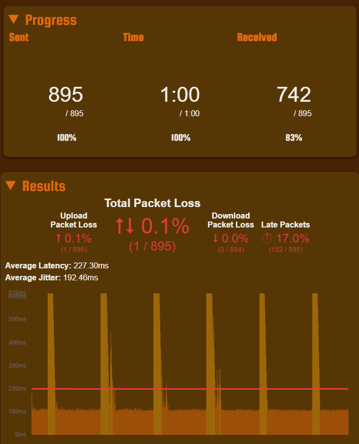 I couldn’t figure out why all players in iRacing were disapearing every 6 or 7 seconds for 3 seconds then appearing again only to repeat 6 seconds later. I got a ping trace which looks like