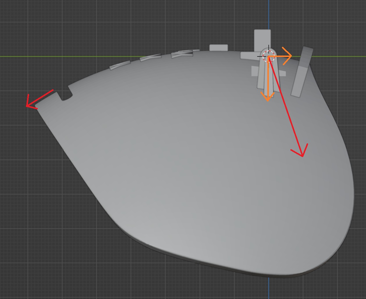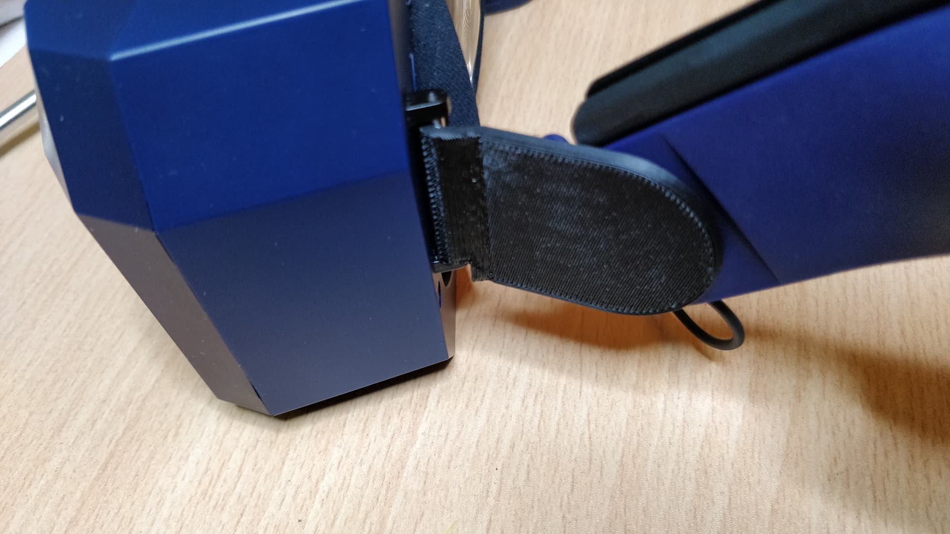 Piece for the back of the head that would rest against the head more evenly and wouldn’t move around so much when looking straight up or down. This has adjusted area, radiuses and hinge positioning. The idea was to try and leverage the instability of the back hinge to keep the headstrap in place. The original Pimax headstrap tended to slip up on me. Use the original top strap to balance against the hinge rotation pull.