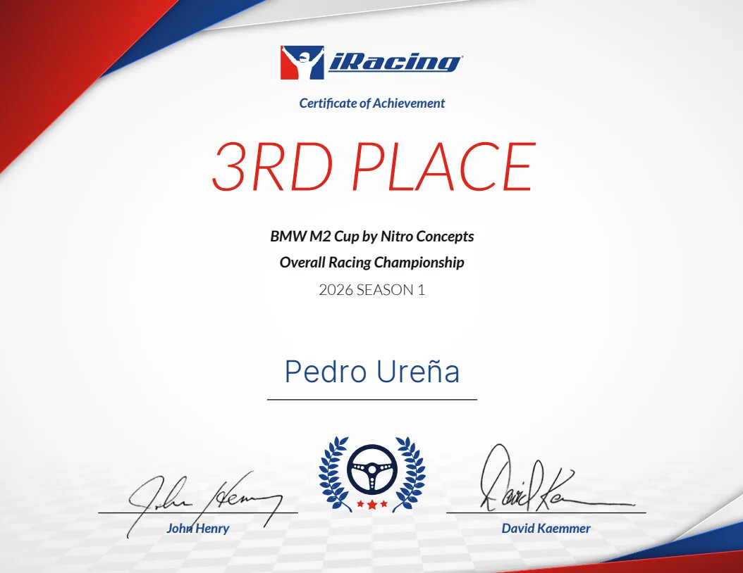 Season 2: Refined his racecraft and reached a 4.4k iRating, ending the season P6 Overall.