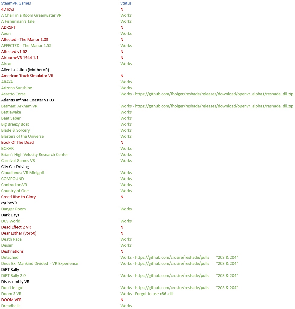 Reshade + SteamVR Games: