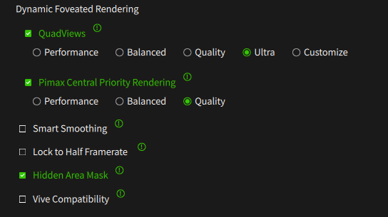 I’m not expecting the magic pill but I would love a simple list of, say, in PimaxPlay settings make sure this IS or IS NOT turned on, etc. Same with MSFS2024 VR settings if anyone is adept with that program.