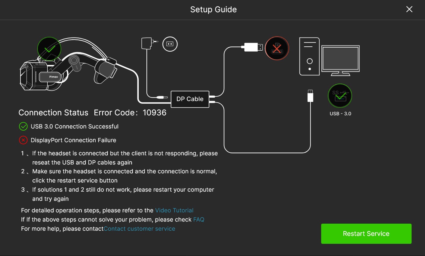 Well, this experience kinda fits the title “Very Frustrated with Shipping”. I created a ticket right away, but man oh man, It brings back some terrible memories of my first Pimax 5k. Same kind of error, the DP cable was also not working well.