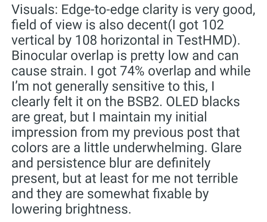 contrary I’ll paste few positive reviews, btw, what’s a real issue with their bsb2e (eye tracking version) is reports about some units heat issue due to some components malfunctioning, seems that’s not a case for ordinary non eye tracking units, but indeed that’s a real issue
