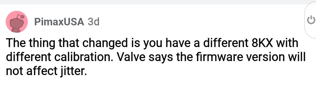 Pimax is referring to this thread on reddit for people with jitter issues on their Pimax 8KX for a solution, and maybe they will exchange the HMD after creation of a ticket and a remote support session.