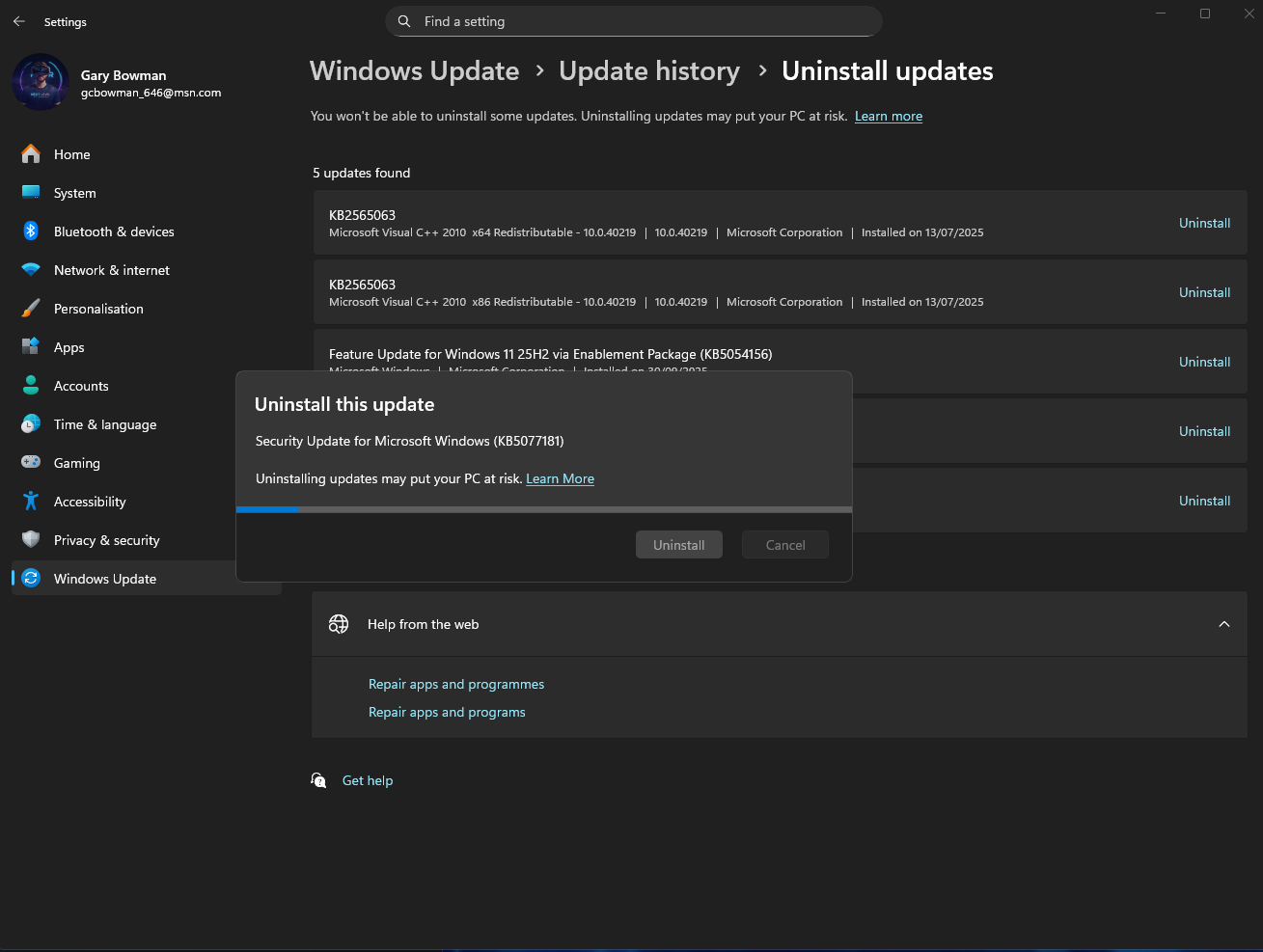 However KB5077181 no longer permits this action, see the attached screenshots, and the current course of action to resolve is to uninstall this update, it is also a known issue for other gaming related problems, to pause the update in services, set Windows Update from Auto to Disabled in processes, highlighting this to everyone who may also be experiencing similar issues, as LMU also uses Easy Anti Cheat, the benign process error may also be conflicting, as this was also an issue with iRacing when EasyAntiCheat was introduced, I have also assisted fellow creator MacInVR who was also experiencing problems on LMU as well, the uninstall also resolved his issues.