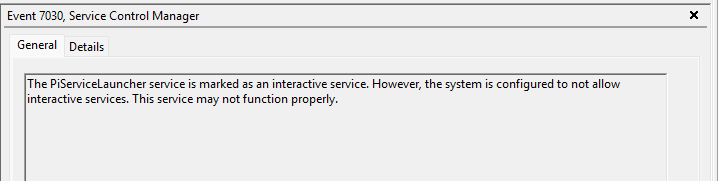 I would assume that Microsoft will patch the issue but PiServer.exe also runs as an interactive service, such services are now depreciated and this Security Update seemingly enforces that further