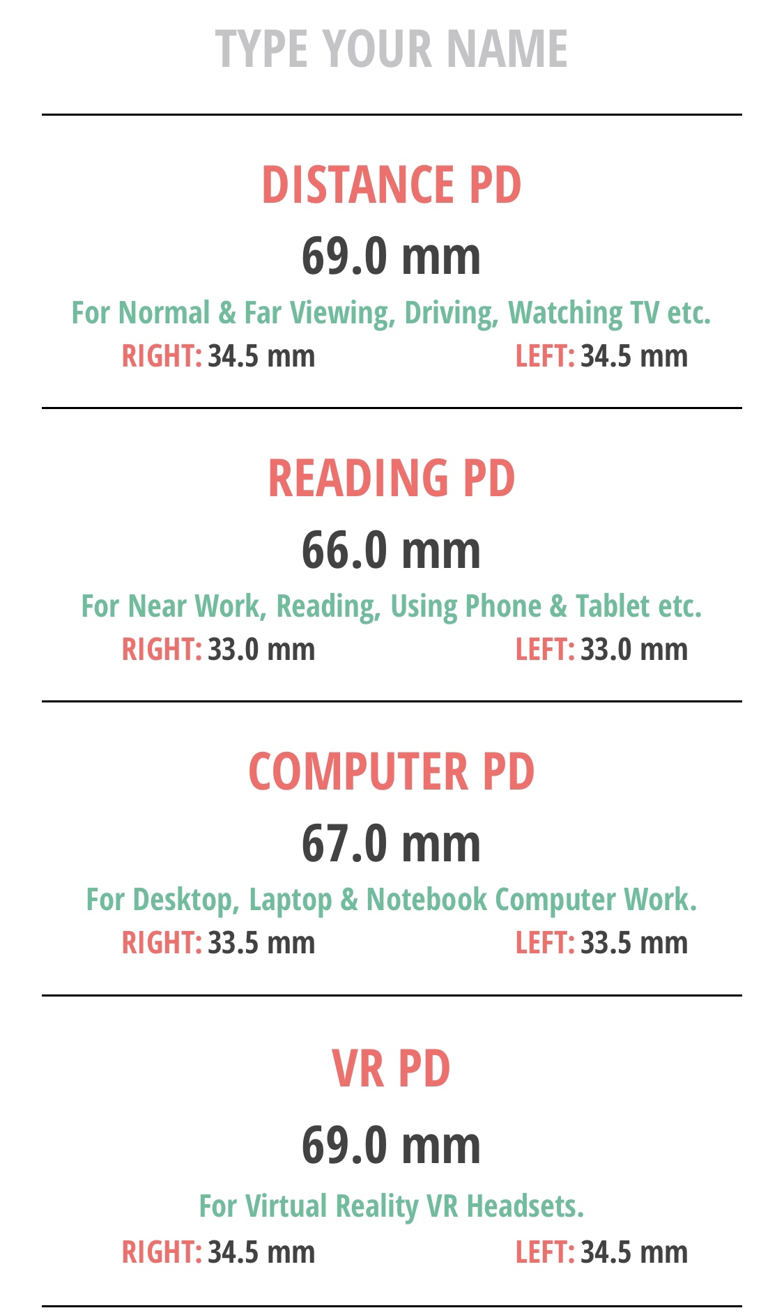 For example, my IPDs are: